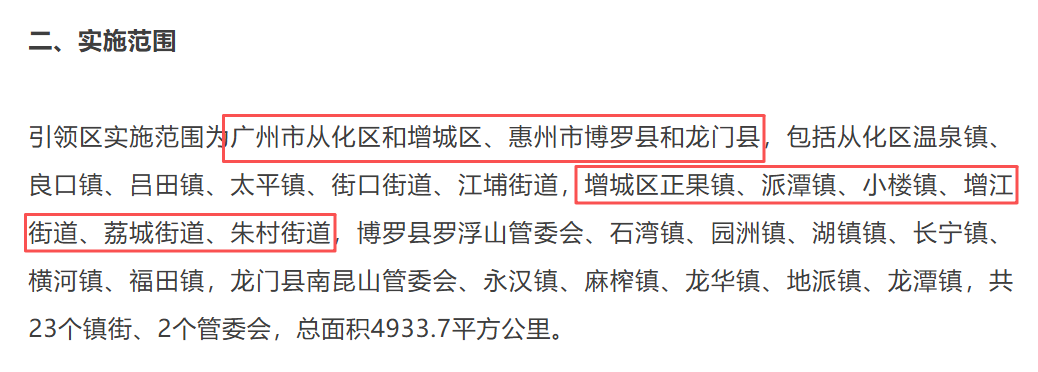 2024年,省委、省政府印发《关于推进环南昆山—罗浮山县镇村高质量发展引领区建设的意见》,明确环南昆山—罗浮山引领区建设范围为“两区两县”——广州市增城区、从化区,惠州市博罗县、龙门县。
